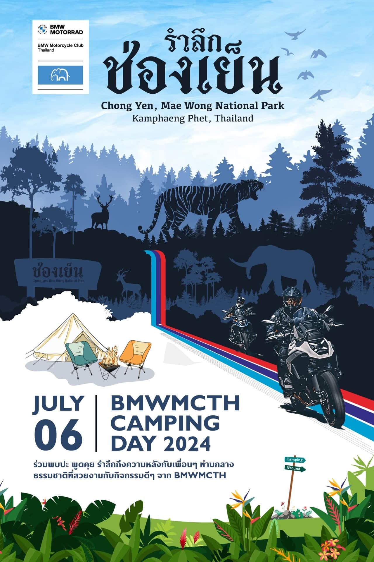BMW Motorcycle Club Thailand (BMWMCTH) hosted Camping Day 2024 — “Remember Chong Yen” at Mae Wong National Park in Kamphaeng Phet Province, inviting members to reconnect with nature and enjoy a weekend of friendship and outdoor activities.